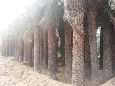 Trunk: Tall, columnar, rough with persistent leaf bases or scars.